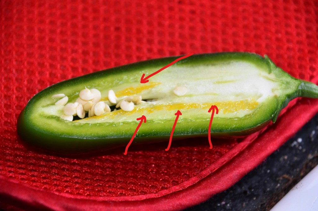 Hot peppers, also known as “chili” or more appropriately chile peppers, are popular and used in cuisines around the world. The heat of hot peppers comes from capsaicin, from a group of chemicals called capsaicinoids. Capsaicin is found in the highest concentrations in glands on the surface of the pepper’s placenta, which is the part of the fruit that connects the seeds to the rest of the plant. When a pepper is cut or bitten, the capsaicin is released and come into contact with the pain receptors in the mouth and throat.