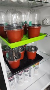 Since we don’t have much cold winter weather, all of the seeds have been sown in cups and have been resting in the fridge to cold stratify for the past month.