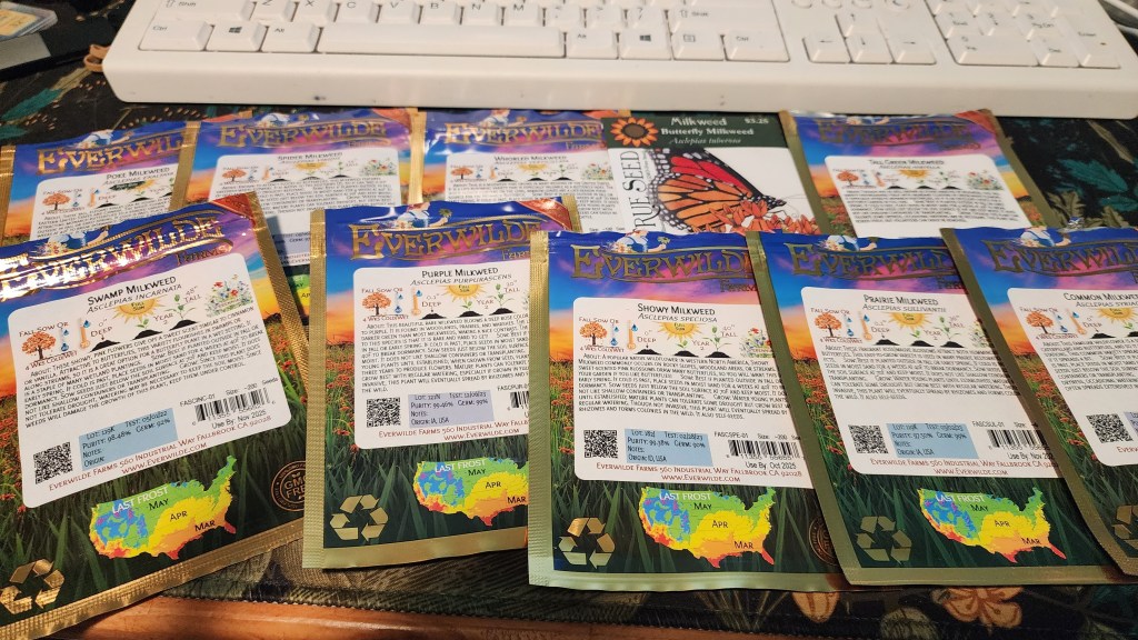 Finding native milkweeds in the garden is almost an impossible task. And to grow your own you need to find the seed, difficult but not impossible. I found a great source for seed at Everwilde Farms. The seed packets have great information from sowing suggestions to germination testing percentages.